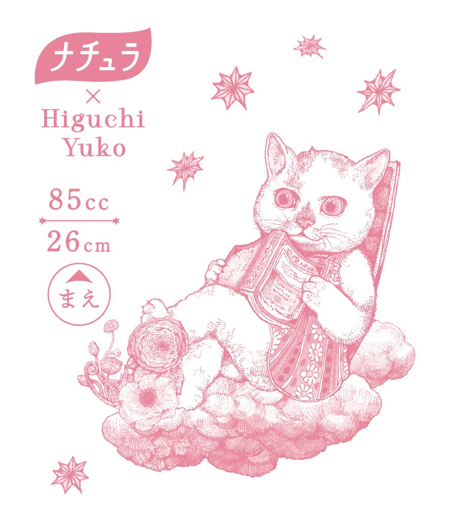 このたび、再販を望む声に応え、第3弾となるコラボレーションを実施します。今回は、これまで販売した商品(全10商品)に加え、新たに「ナチュラ さら肌さらり おまもり吸水ライナー」10ccの通常・大容量パックの2商品を追加。ヒグチユウコさんの作品の中でも特に人気の高いネコのイラストを用いた全12商品をラインナップに揃え、数量限定で発売します。また、2026年3月23日(月)〜2026年6月30日(火)の期間、「ナチュラ」や生理用ナプキン「エリス」の対象商品を購入いただくと、抽選で合計3,000名さまにヒグチユウコさんデザインの限定クリアポーチが当たる「ナチュラ×エリス×ヒグチユウコ コラボ記念キャンペーン」を実施します。