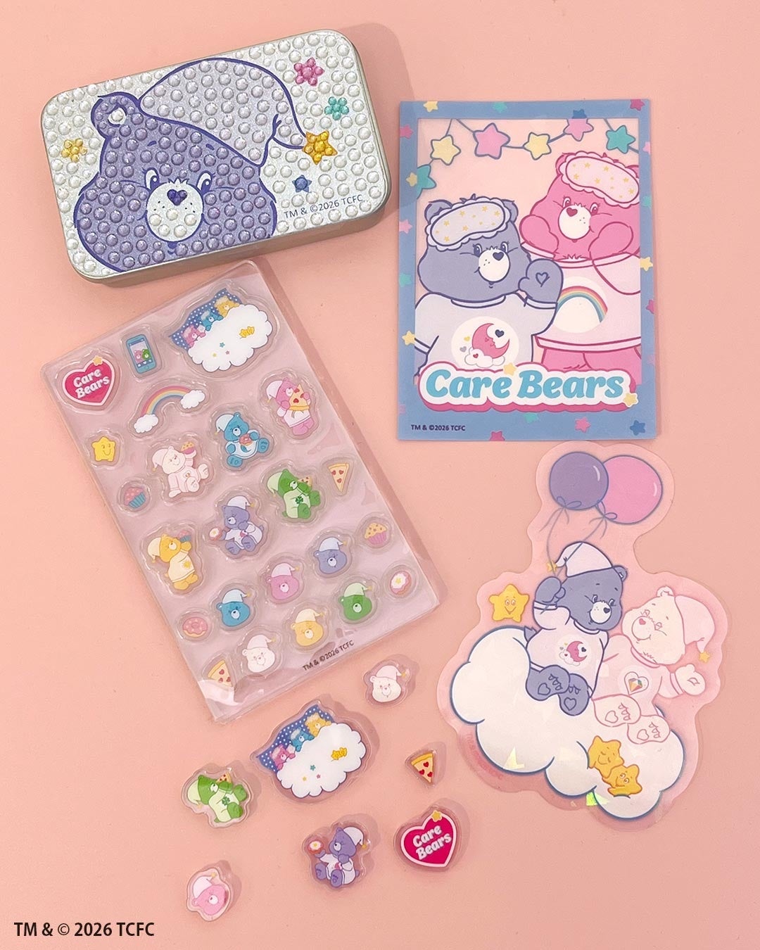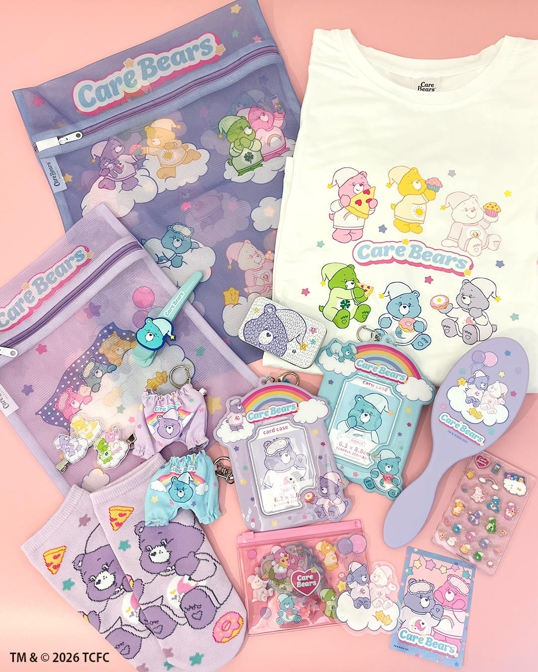今回は、ケアベア™が”パジャマパーティー”を楽しむ様子を描いたアイテムを展開します。