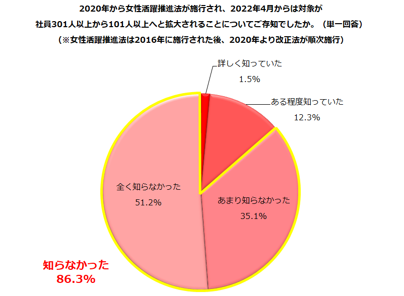 1.2022年4月からの女性活躍推進法の対象拡大を「知らなかった」86.3%