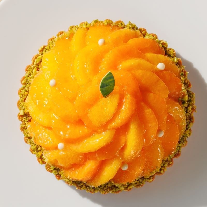 厳選したみずみずしい3種類の柑橘フルーツをふんだんに盛り込んだタルト。エシレバターを使用してしっとり焼き上げたタルトにエルダーフラワー香るオレンジのジュレとなめらかなフロマージュクリームを重ねました。
