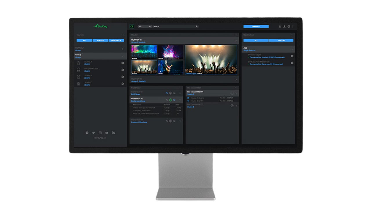 このルーティングマトリックスの操作中には、BirdDog のユーザーインターフェース (BirdUI) へすぐにアクセスできる直リンクも提供されます。ユーザーが作成したルーター出力は、他の NDI 対応ソフトウェアまたはハードウェアデコーダーでも使用できます。