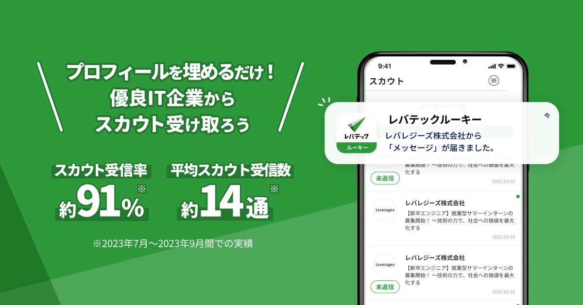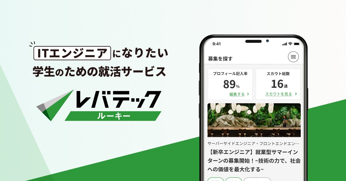ITエンジニア志望学生向け「レバテックルーキースカウトサービス」が、3月10日より、モバイルアプリの提供を開始