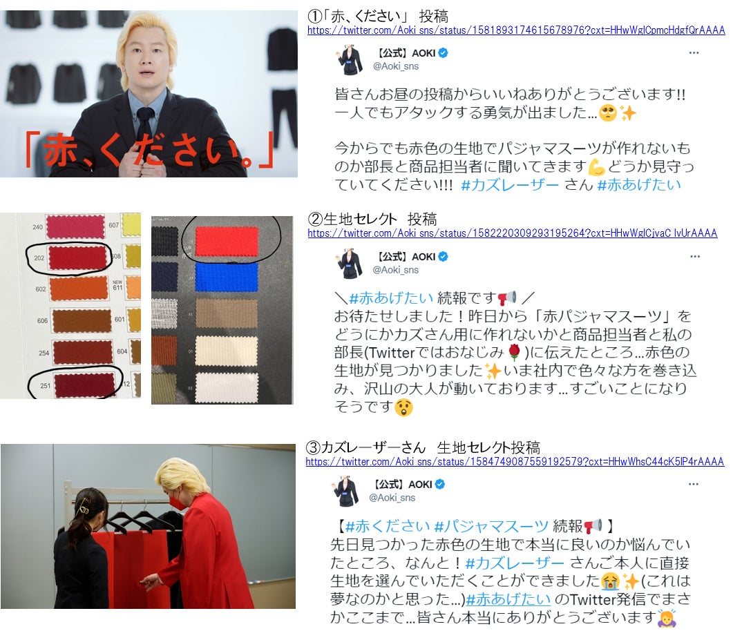 カズレーザーさんの「赤、ください」という“熱望”にお応えし 『赤パジャマスーツ®』特別企画に奔走⁉カズレーザーさんモデルを抽選で10名様に販売!AOKI公式Twitterにて本日12時半より応募開始!