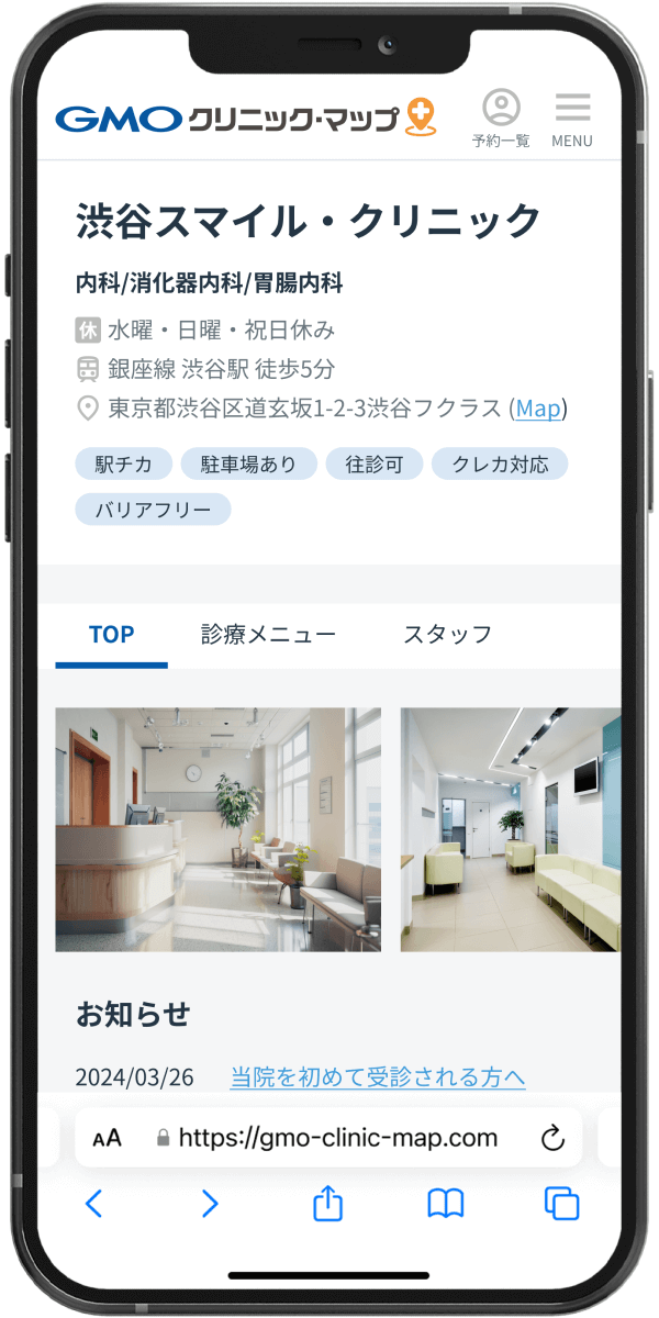 ② クリニック検索・予約サイト「GMOクリニック・マップ」