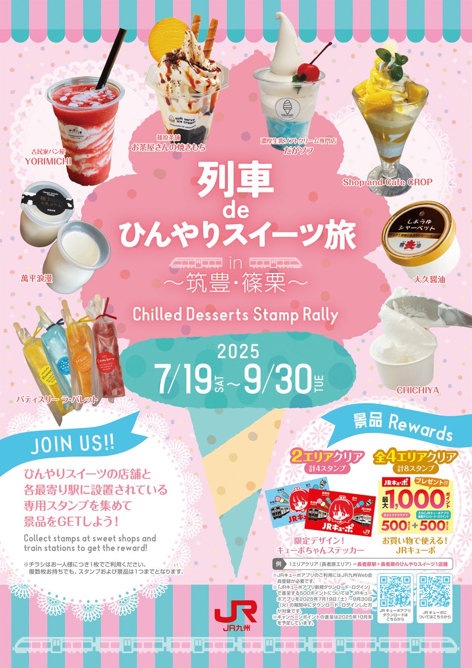 JR九州筑豊篠栗鉄道事業部では、日頃のご利用に感謝するとともに、多くのお客さまが楽しんでいただけるイベントとして「列車 de ひんやりスイーツ旅 in 筑豊・篠栗」スタンプラリーを実施いたします。