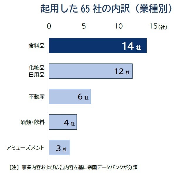 [注1] 帝国データバンクが保有する企業情報や外部情報から、「ジャニーズ」タレントをテレビCM・企業広告として23年以降に起用が判明した(予定含む)上場企業65社(グループ含む、9月13日時点)が対象。各社発表または報道資料に基づく