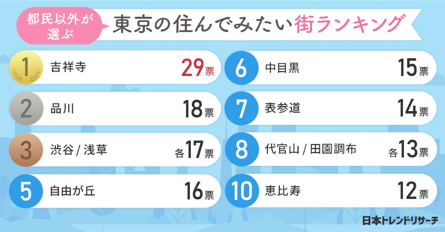 日本トレンドリサーチ・住んでみたい東京の街に関する調査