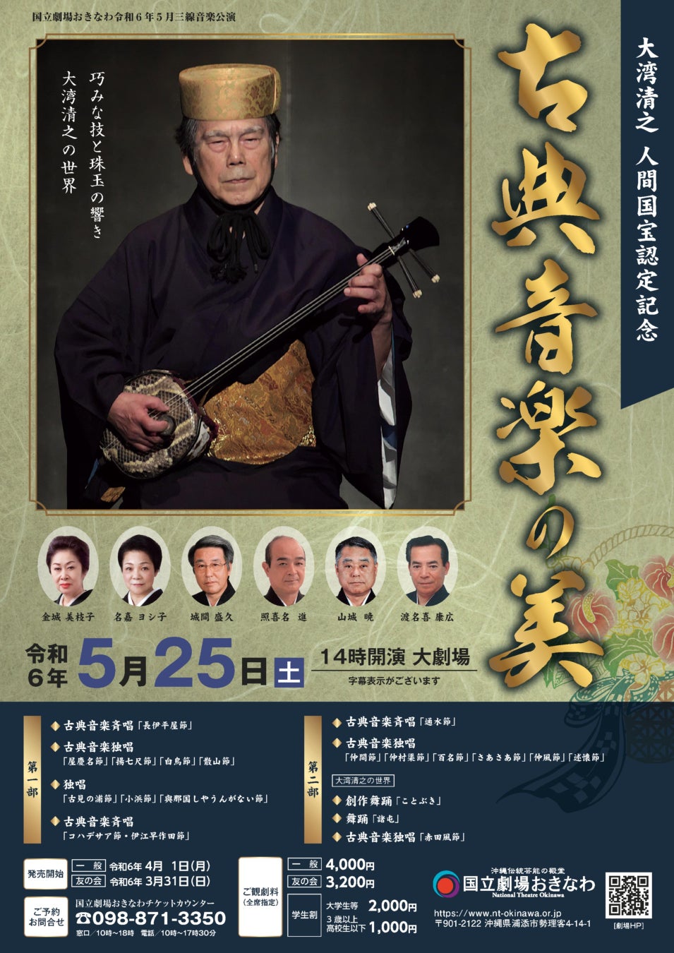 【国立劇場おきなわ】【令和6年4月1日一般発売】~大湾清之 人間国宝認定記念~古典音楽の美
