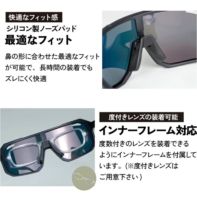 加えて、インナーフレーム対応で度付きレンズの装着も可能です。