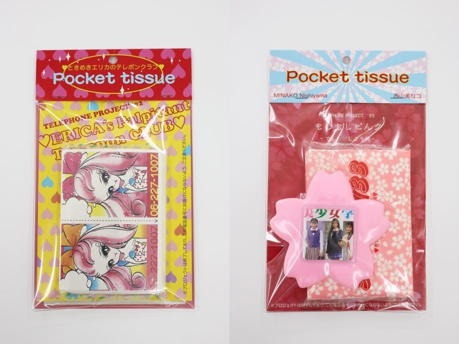 本展では砂糖を使って制作したバラの立体作品《destiny of Sugar Rose》を展示、合わせて受注販売を行います。その他、六甲ミーツアートで発表したシュガーローズの作品を収録した写真集や、瀬戸内国際芸術祭2022において高見島での展示風景を撮影したポストカード、1992年/1995年の電話を使ったプロジェクト《♡ときめきエリカのテレポンクラブ♡》《もしもしピんク》にて当時制作したポケットティッシュやバッジを、西山自身が2022年にパッケージングしたものも販売します。