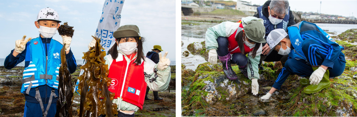 「海のヒジキは、いつも食べているヒジキと色も形も違う」「ワカメがこんな風に生えているなんて知らなかった」「コンブがぬるぬるしている」など、たくさんの発見に大興奮でした。