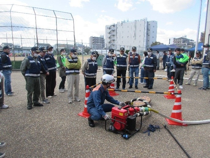 大規模災害時には救助や支援が大幅に遅れるケースがあり、「自分たちの地域は自分たちで守る」自主防災組織の役割は被害を抑えるために重要です。今回の防災訓練では、小型動力ポンプの取扱いや要救助者の搬送方法などを学ぶことで地域防災力の向上を図り、災害に強いまちづくりをめざします。