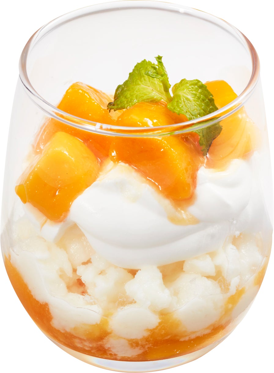 ヨーグルト風味のグラニータに、シロップ漬けにしたごろっとサイズのマンゴーとふんわり食感のホイップを重ねた夏らしいドルチェです。マンゴーの濃厚な甘みが、さっぱりとしたヨーグルトグラニータにマッチします。ぜひ、ジョリーパスタで夏にピッタリなひんやりドルチェをお楽しみください。