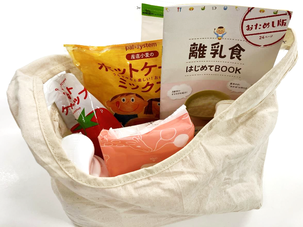 市は出生届を受理する際に、子育てに役立つ商品のセット「おめでとうばこ」の案内カードを配付します。商品は、パルシステム利用者から人気の高い食材やベビーソープ、おしりふきなど7品の詰め合わせです。希望者へは、パルシステムが市に代わり自宅まで届けます。そのほか、情報提供の一環として、市作成の相談先や子育て支援に関する情報提供にも協力する予定です。