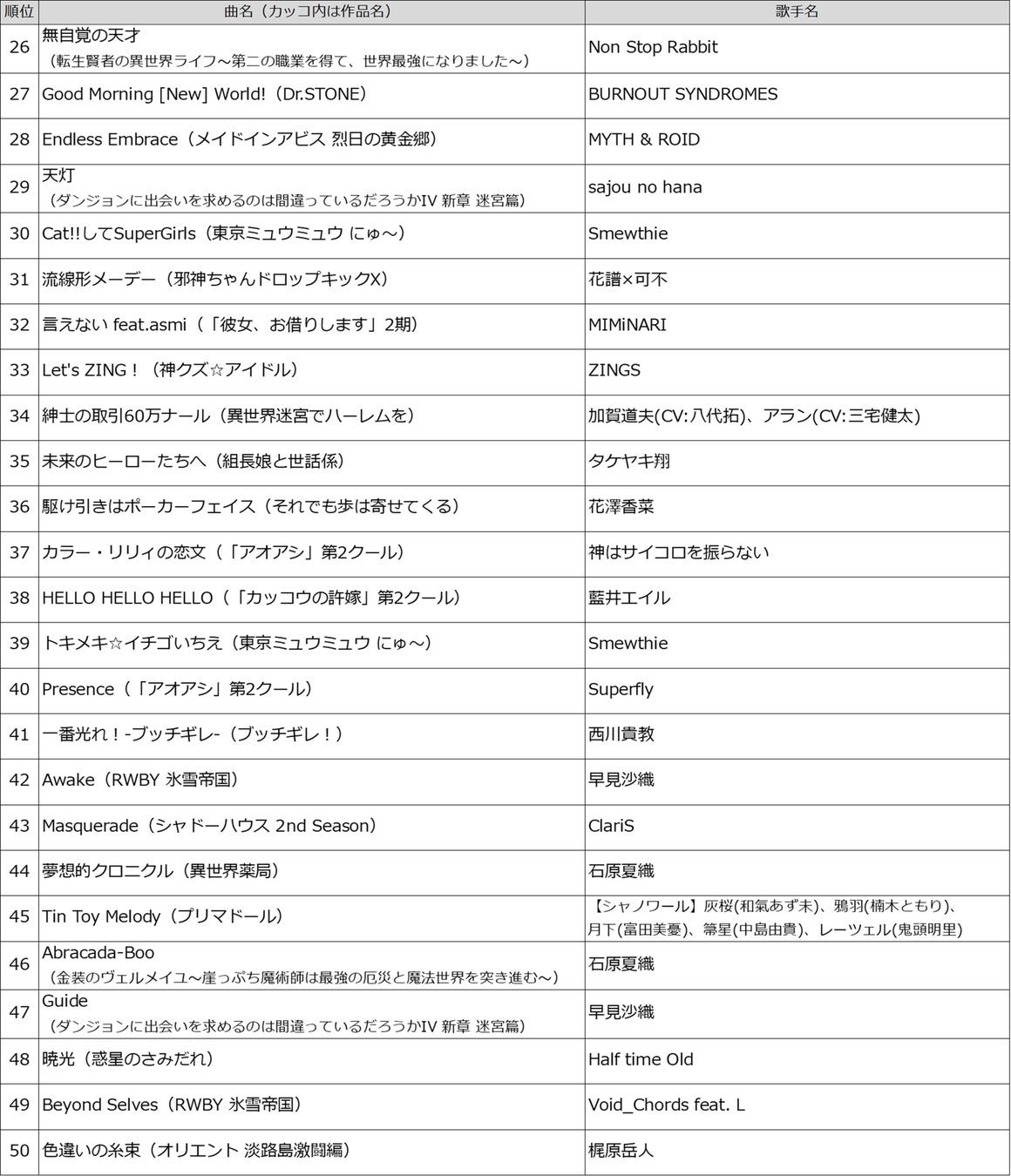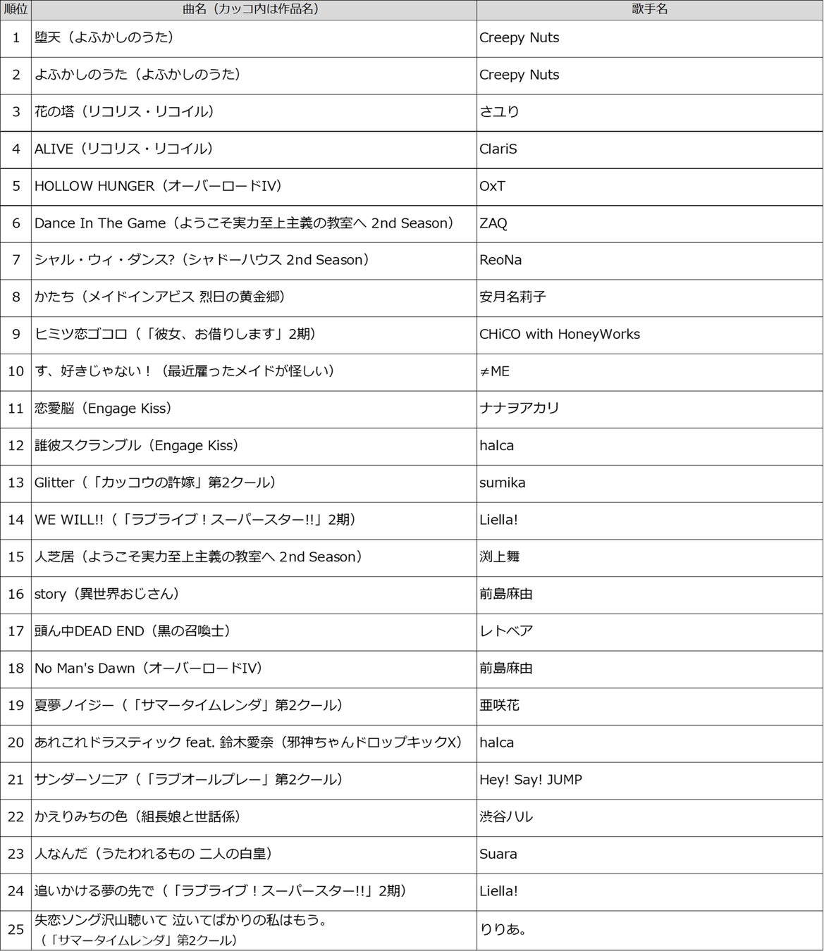 ※ 放送が期をまたぐ作品で楽曲が前期と同じ場合は対象外となります。