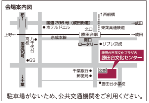 ・(京成線「勝田台駅」および東葉高速線「東葉勝田台駅」下車。A1出口から徒歩5分)