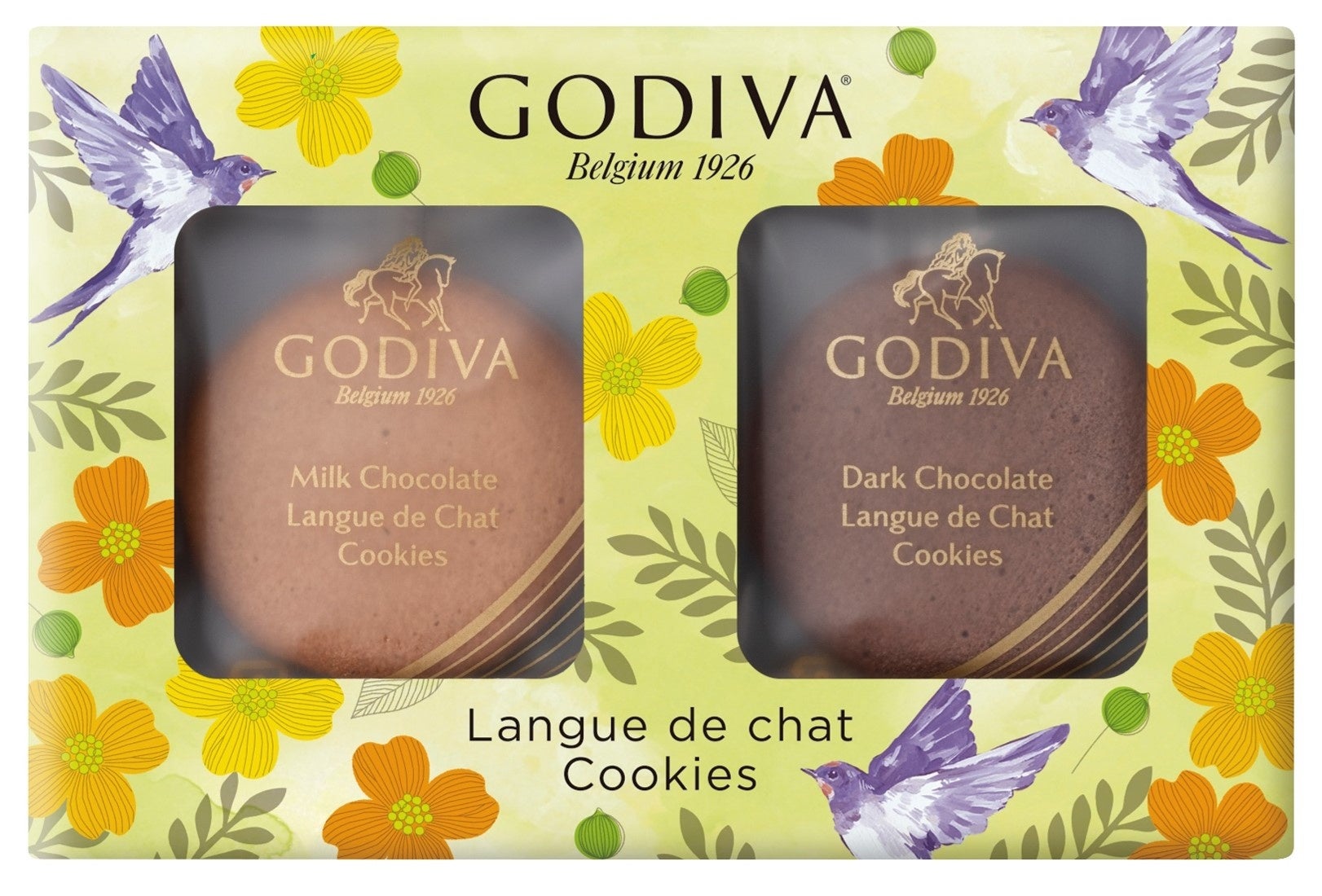 サクッとした口あたりと風味豊かなチョコレートのハーモニーが楽しめる「ラングドシャクッキー」2種と、ゴディバのチョコレートへのこだわりが詰まったスクエアタイプのチョコレート「カレ」2種(7枚入のアソート)または3種(15枚入のアソート)を、花と小鳥をデザインしたオリジナルパッケージにアソートしました。