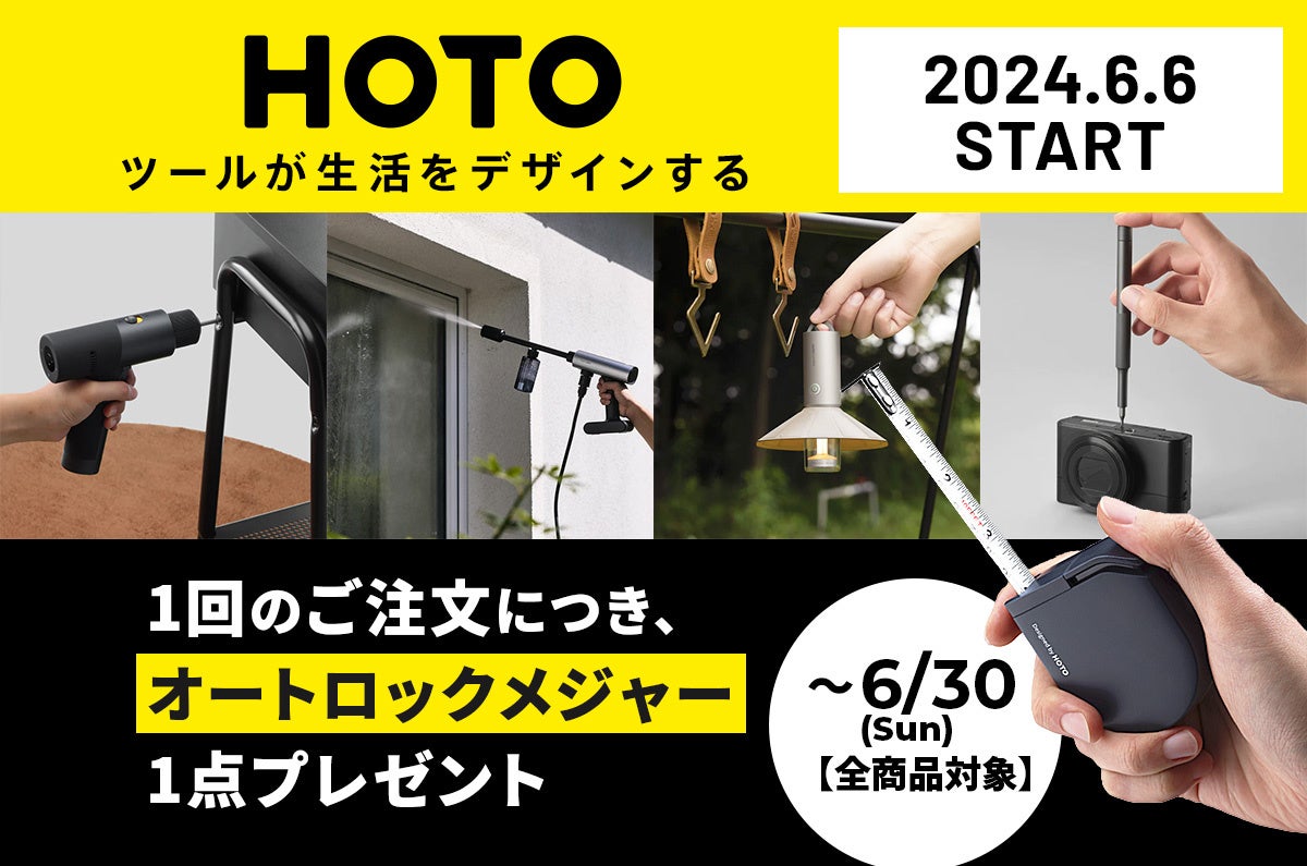 このたびオンラインストアオープン記念として6月30日(日)まで「HOTO JAPAN 公式ストア」で購入の方に、海外版オートロックメジャーをプレゼントします。ぜひお買い求めください!