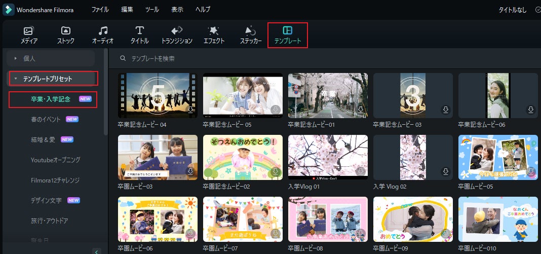 * 卒業・卒園・入学式ムービーに使えるテンプレート素材がソフト内に随時追加中 *
