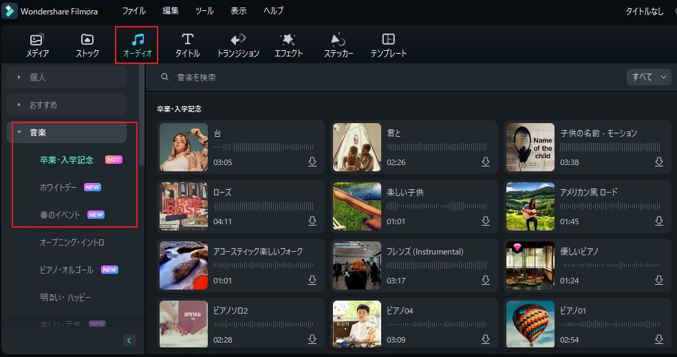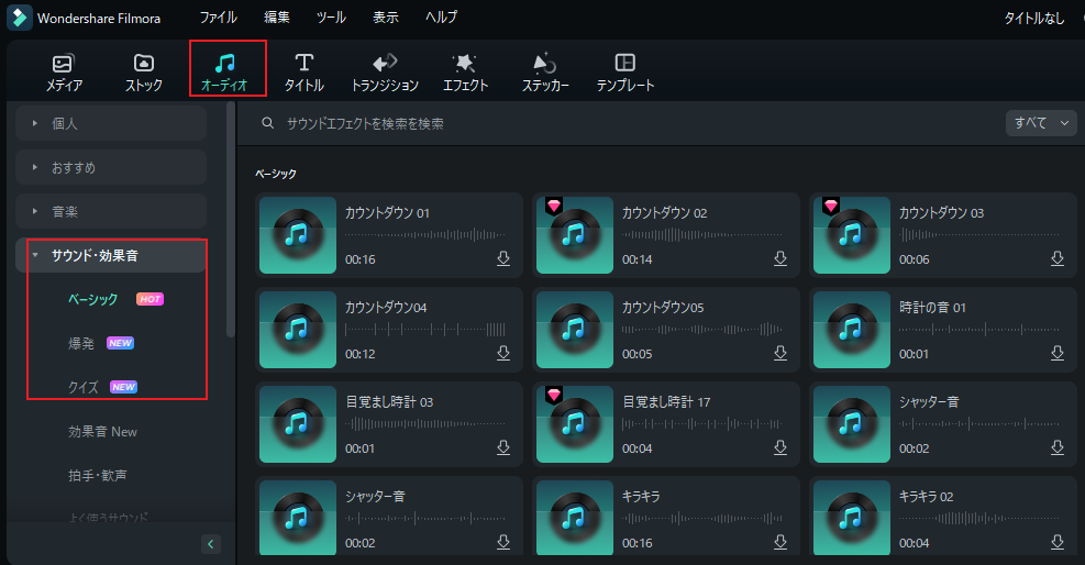 - ▼ Filmora(フィモーラ)バージョン 12 |無料で使える春の音声/エフェクト素材が新登場