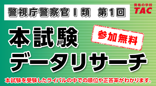 公務員、日商簿記検定、税理士、公認会計士などの資格取得に向けた教育サービスと展開しているTAC株式会社(東京都千代田区、代表取締役社長:多田敏男)は、4/30(土)実施の「警視庁警察官I類 第1回」試験の本試験データリサーチを5/1(日)10時よりホームページで実施いたします。
