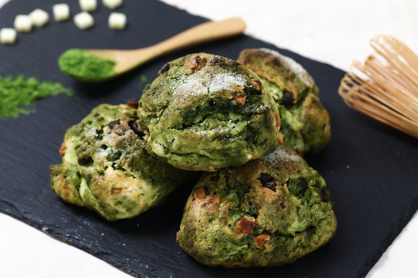 2022年9月より販売した『スコーン アールグレイ』のヒットに続く、抹茶フレーバー。抹茶の風味を際立たせるために、チョコチップとホワイトチョコを練り込みました。表面はさっくり、中はほろっとしっとり。2種類のチョコの甘みが抹茶の風味を引き立てます。