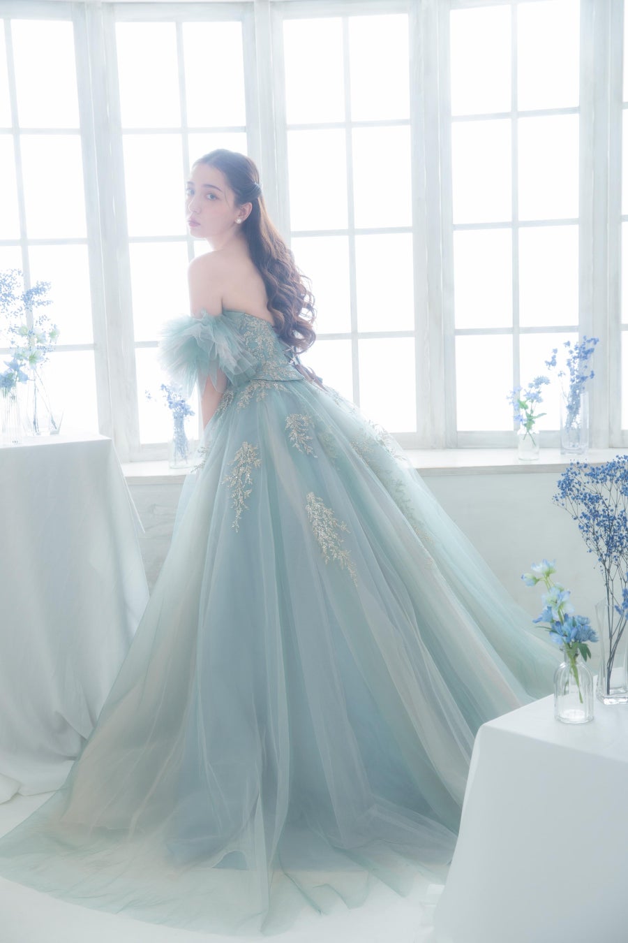 淡いエメラルドグリーン×ホワイトの新作ドレス。
