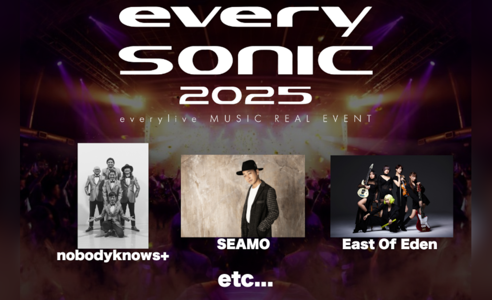 参加者全員がポジティブな持ち味を感じられる場所を提供することを目的にし、ライブ配信とリアルの融合をテーマにした熱狂必至の音楽イベント「every sonic 2025」。