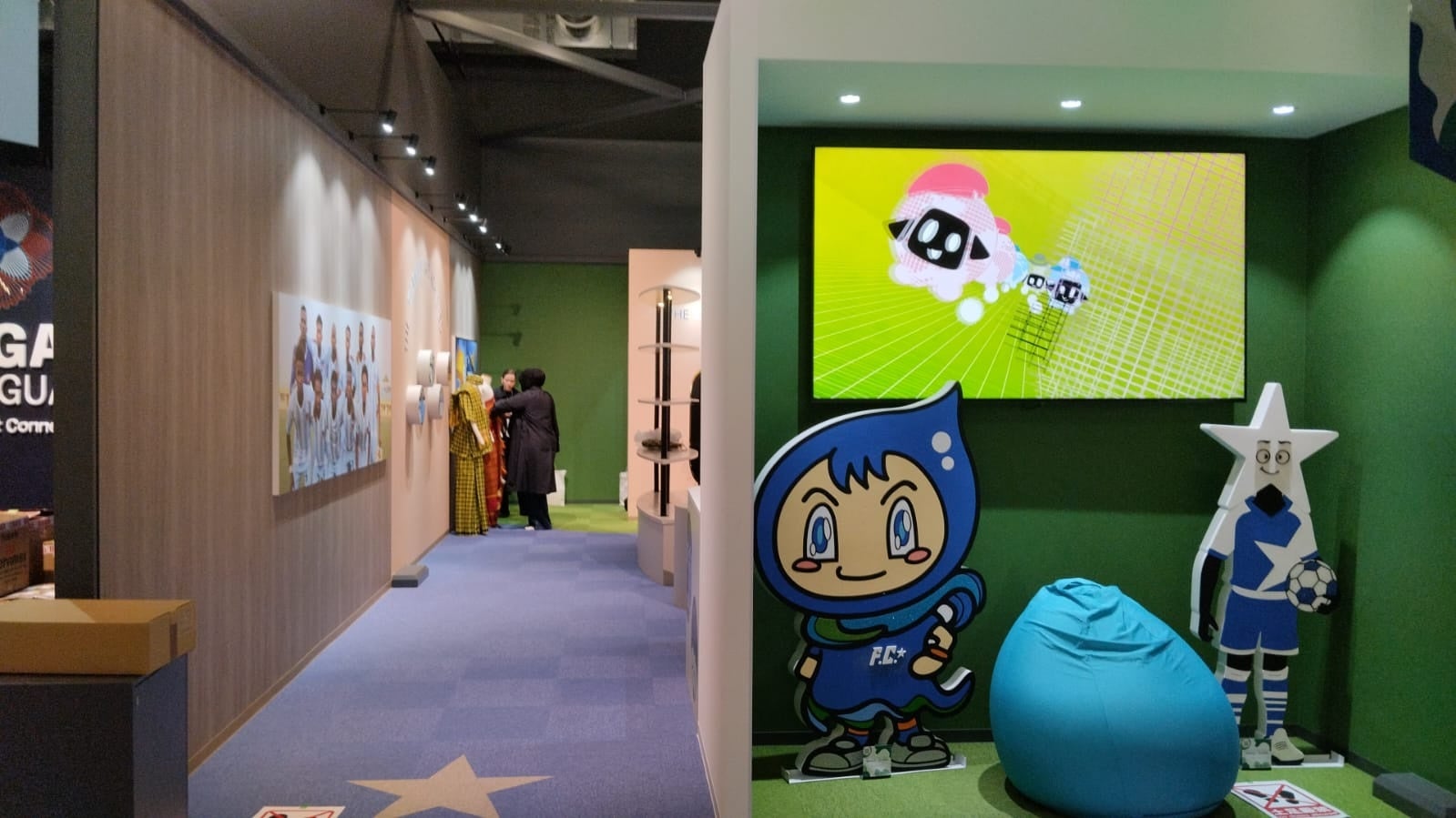 「サッカーは世界共通言語」をキャッチフレーズに、多くの人々にソマリアを知ってほしいというソマリア連邦共和国・万博コミッショナーの想いから、ソマリア国旗、そして代表チームと同じ水色をチームカラーとしているサッカークラブを探されていると言うことでご縁をいただき、展示の企画サポートをすることとなりました。