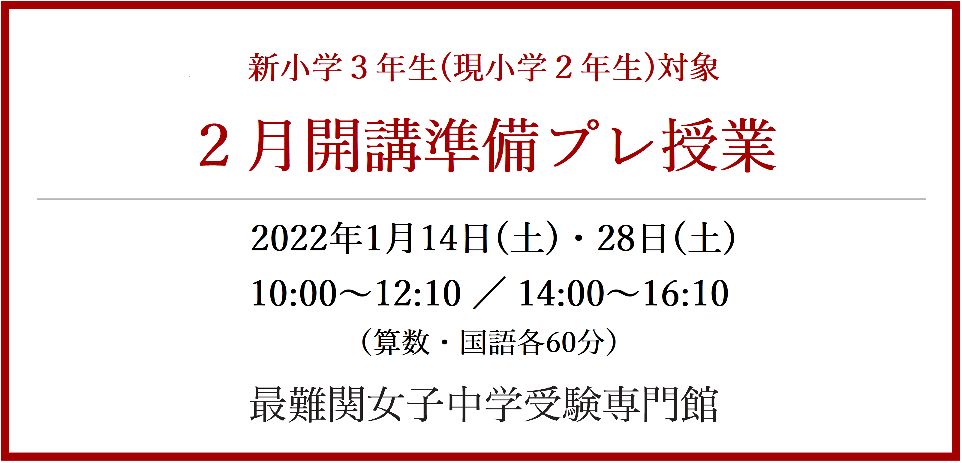 ※責任を持って指導を行うため、「2月開講準備プレ授業」の受講をご希望の方は、事前に入塾選抜テストをご受験ください。入塾選抜テストに合格した方のみ、「2月開講準備プレ授業」にご参加いただけます。
