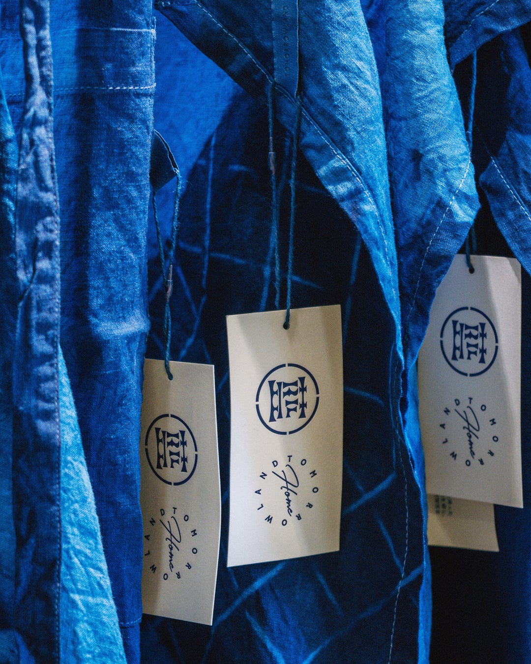 沖縄にて染料作り・染加工までを一貫して行い、藍の可能性を探求する〈琉球藍研究所〉とコラボレーションしたカプセルコレクション〈TOMORROWLAND HOME “Indigo”〉を数量限定で展開。