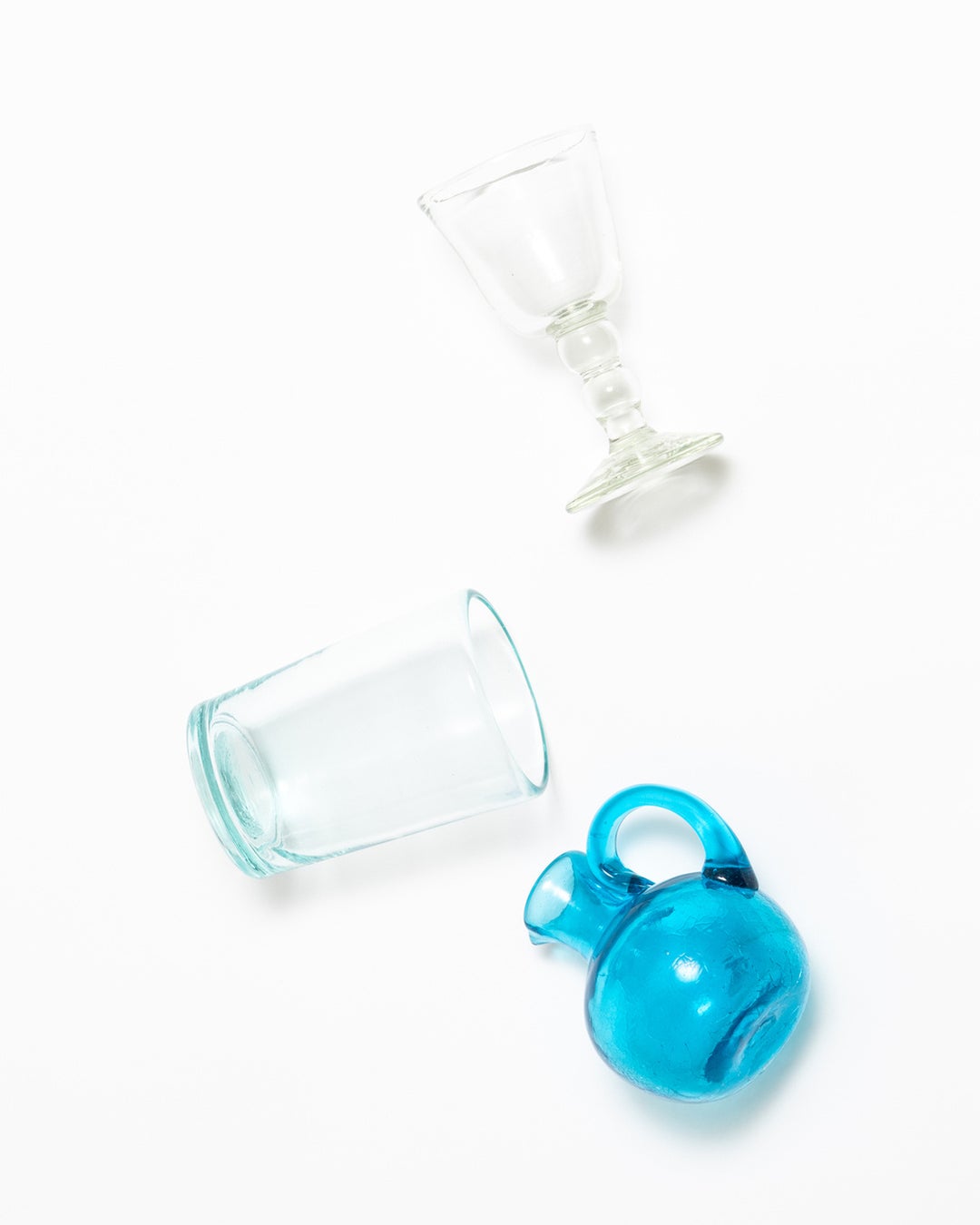1955年創業の沖縄を代表する小料理店 小桜(こざくら)の協力のもと、昭和後期から平成初期に製作された琉球ガラスのデッドストックコレクションを展開。