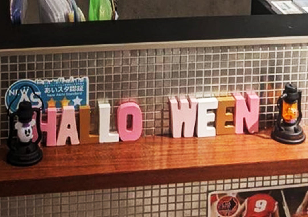 店内は、ハロウィーンの装飾が施され、アットホームなハロウィンパーティーをイメージした空間となっています。貸切パーティーも可能ですのでお気軽にご相談ください♪