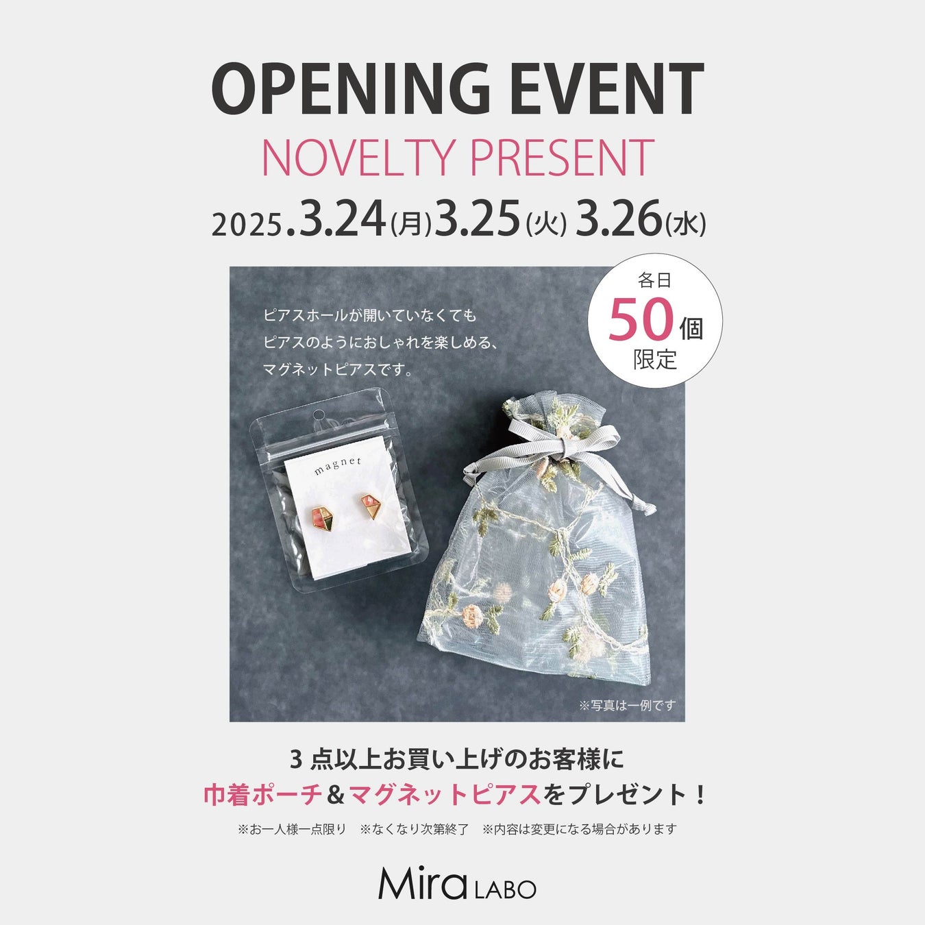 ※ノベルティの内容や詳細は変更になる可能性がございます。詳しくはMira LABOの公式SNSをご確認ください。