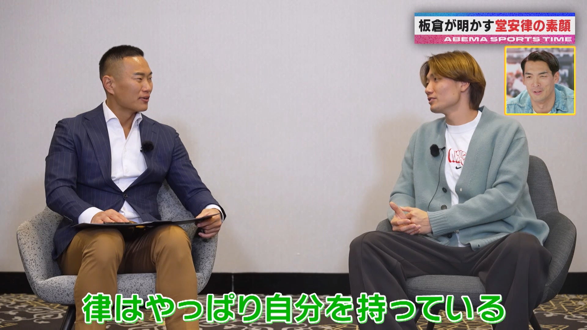 また、板倉選手へ堂安選手について直撃。鄭大世さんは「堂安選手は代表から帰ってくる時に、いつもサングラスをかけている。あれどう思います?(笑)」と冗談めかして聞くと、板倉選手は「『律だな』って思います(笑)。『かっこつけ』って言うんですかね?(笑)自分を持ってますよね」とニヤリ。さらに「前の方が最近の私服より勢いがあった。最近は『あれ?律?』みたいな(笑)」と、仲の良い板倉選手ならではの発言が飛び出しました。