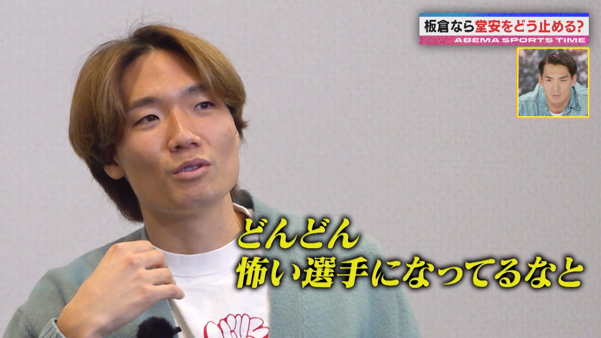 そんな強敵・堂安選手の攻略法を、板倉選手は「僕がセンターバックとして入る時は、カットインして入ってきたタイミングでコースに体を入れるとかして、ちゃんと出れるようにしておく」とビジョンを描きました。さらには、「今季はヘディングでも点を取っているように、得点パターンが多い。そういうのを見ると、どんどん怖い選手になっているなと思う」と“堂安評”を語りました。