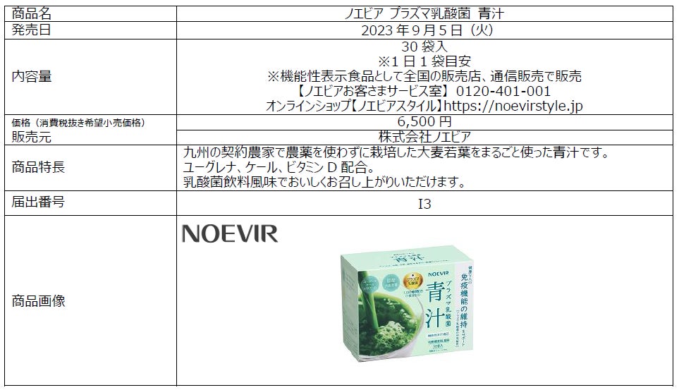 ・株式会社ノエビア(代表取締役社長 海田安夫)から「ノエビア プラズマ乳酸菌 青汁」を9月5日(火)から