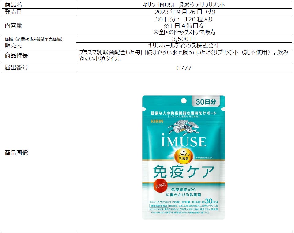 ・「キリン iMUSE 免疫ケアサプリメント」は習慣的に摂取するお客様が増えていることから、新たに「キリン iM