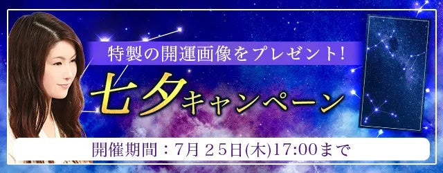 真木あかりの公式占いサイトでは、『七夕キャンペーン』を開催中です。期間中、対象の鑑定を占っていただいた方には、オリジナル開運画像をお贈りいたします。