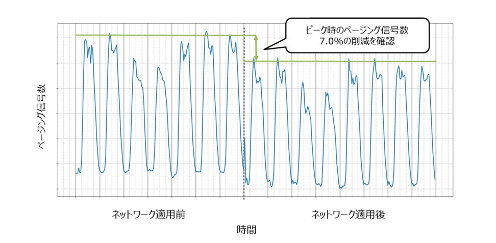 時の値がネットワーク適用後に65.3%削減するという大きな効果を確認しました。同時に、着信時に基