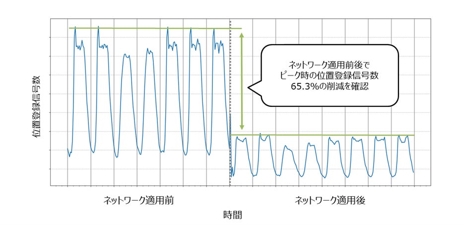 が見られました。特に、端末がTA-Listを跨いで移動する際に発生する位置登録信号数が、1日のピーク