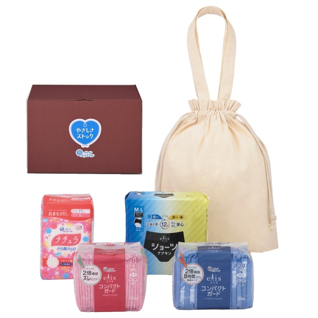 ■エリエール 防災セット 「やさしさストック」 女性用:生理用品・吸水ケア用品4品+トートバッグ