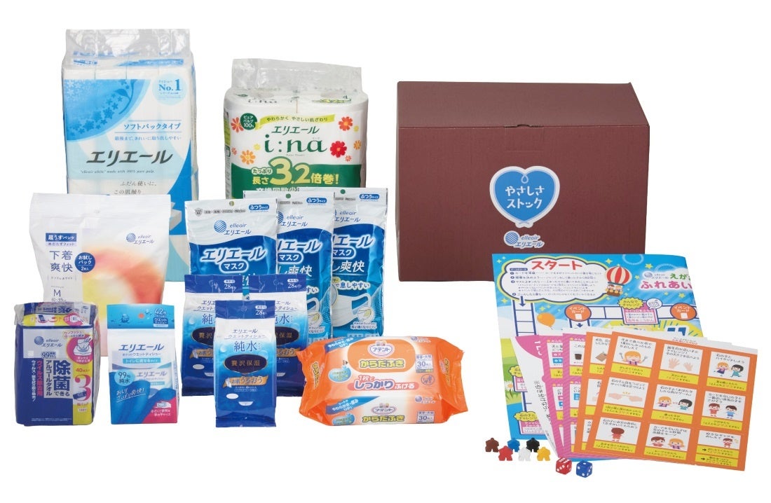 また、被災時のいつもと違う環境でもご家族や周りの人が自然に声をかけ合うきっかけになることを願って「エリエール えがおにタッチ ふれあいスゴロク」(非売品)も同梱しました。