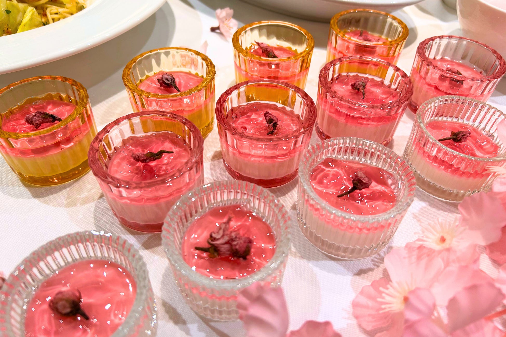 可憐な桜色のジュレをのせた、桜の香り広がるなめらかなパンナコッタ。