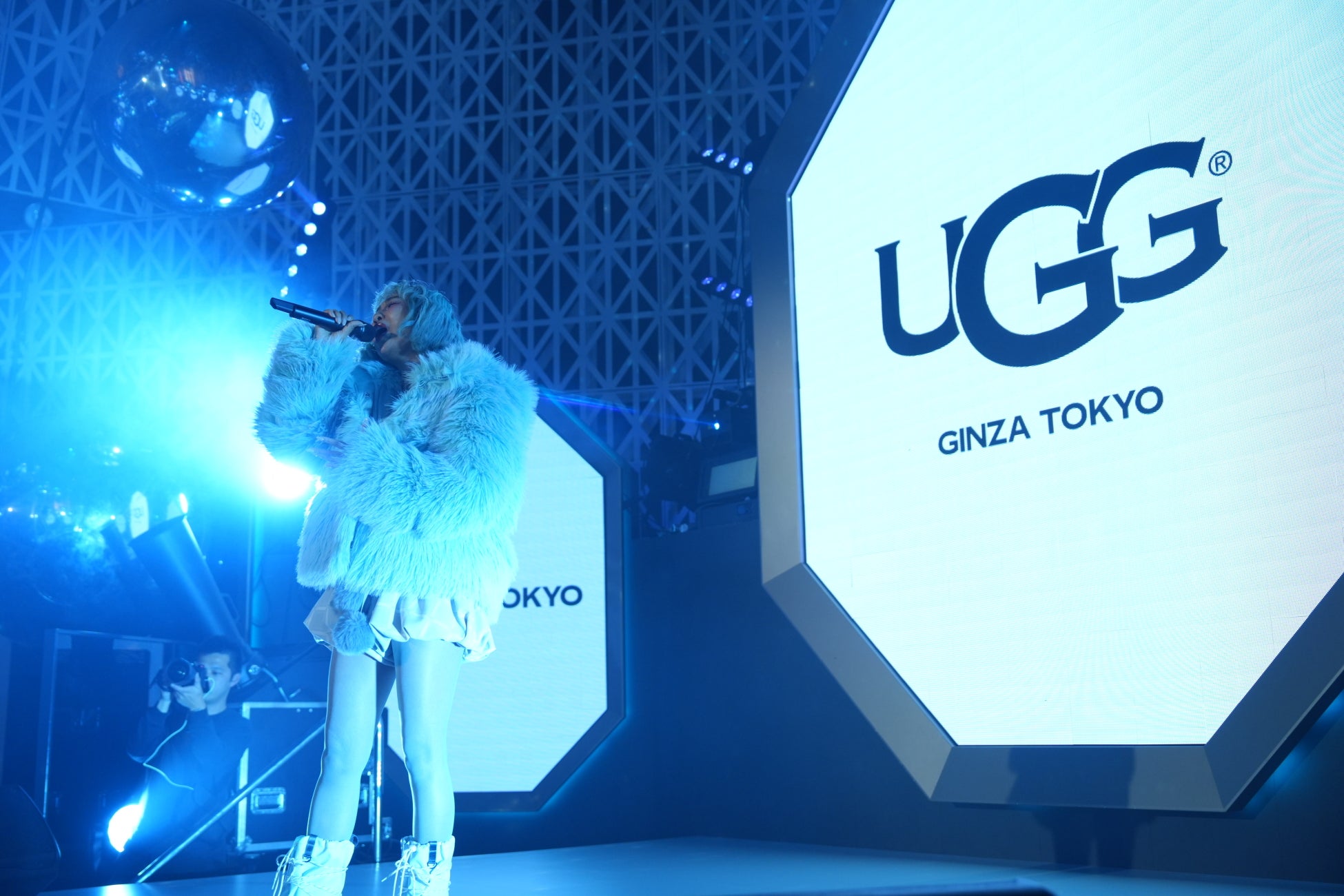 銀座RAISEにて開催されたレセプションパーティーでは、UGG 2021年秋冬キャンペーン「FEEL YOU」でアンバサダーを務め、UGGの愛用者でもある青山テルマさんがスペシャルゲストとして登場。「UGG銀座松屋通り」のオープンを祝した、一夜限りの特別ライブパフォーマンスが実現しました。