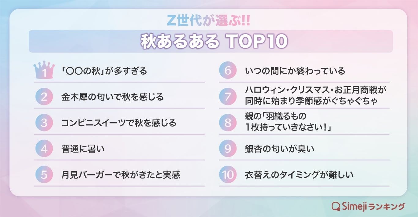 【Simejiランキング】Z世代が選ぶ!!「秋あるあるTOP10」