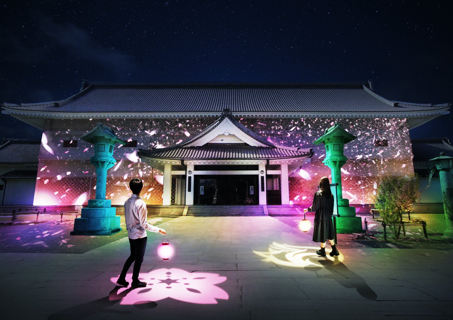 訪れた人たちと豊川稲荷とのご縁が光で感じられる参加型アート『参道ライトアップ-光の響縁-』も、反応しあう「提灯の光」と「境内のライトアップ」が春のカラーリングにバージョンアップ。さらに、SNSでも好評の『NAKED花みくじ™』は春色のおみくじを追加。また春の特別期間限定で、詣でながら桜を感じられる寺宝館プロジェクションマッピングが新たに登場し、寺宝館が桜の装いに変化します。