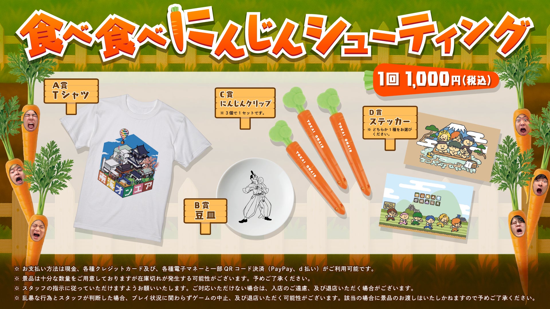 東海オンエアのメンバーの口にニンジンをどんどん食べさせて景品をゲットしましょう! 動画の面白さそのままに、ゲームとして楽しめるユニークな体験となっております。 ぜひ店頭で挑戦してみてください。