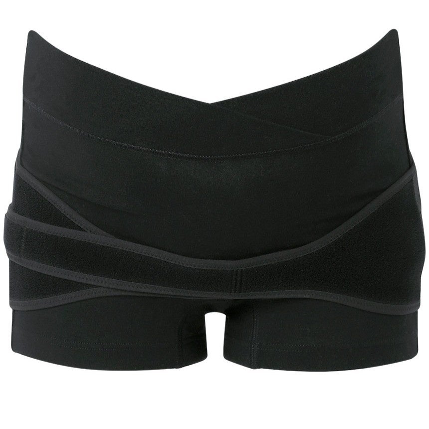 はくだけで簡単にベルトを正しい位置につけることができる、ショーツタイプの骨盤ベルト。