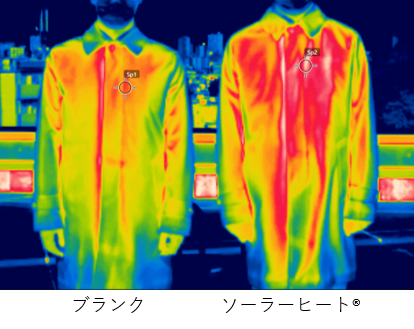 ①太陽光のエネルギーを利用して温度が上昇する素材を表地に使用